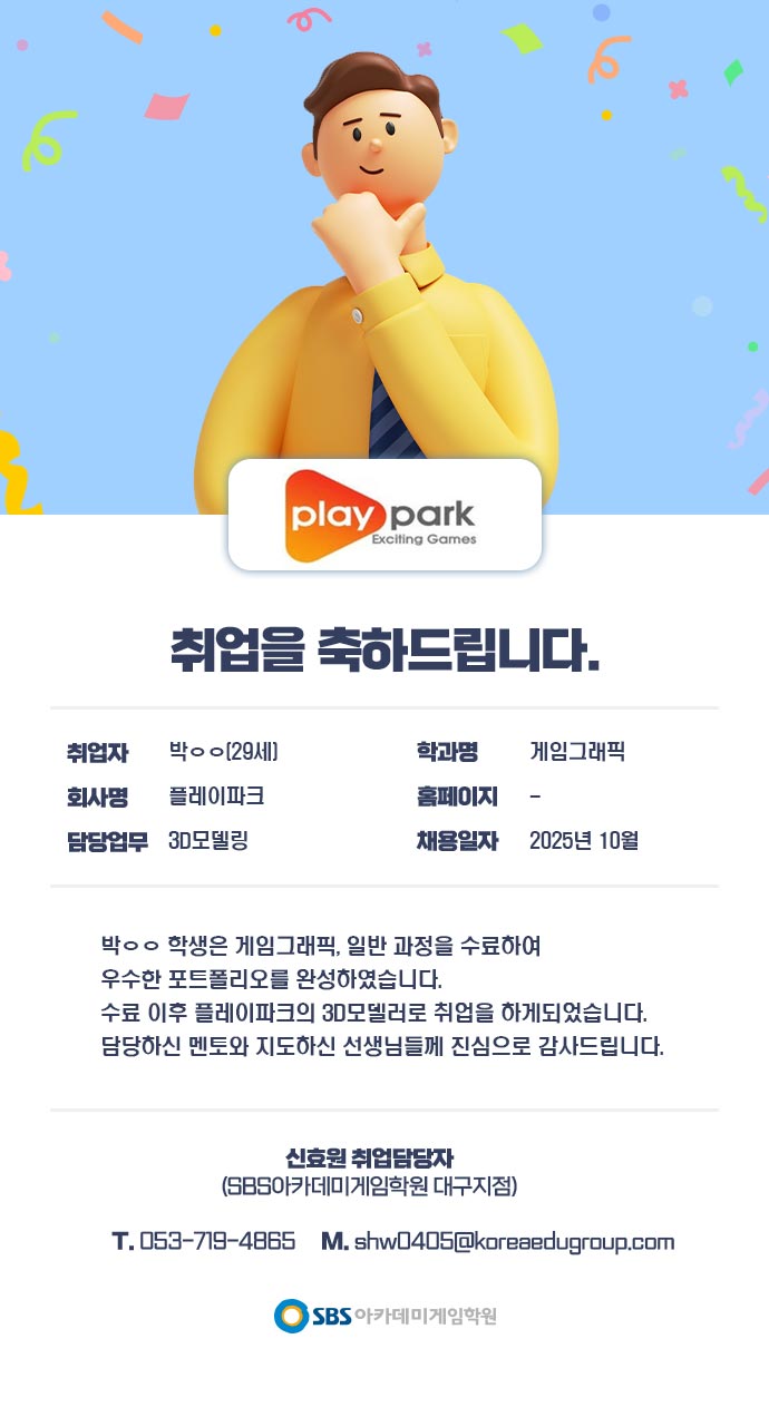 ※ 현재 SBS아카데미게임학원은 개인정보를 제3자에게 제공하지 않습니다.